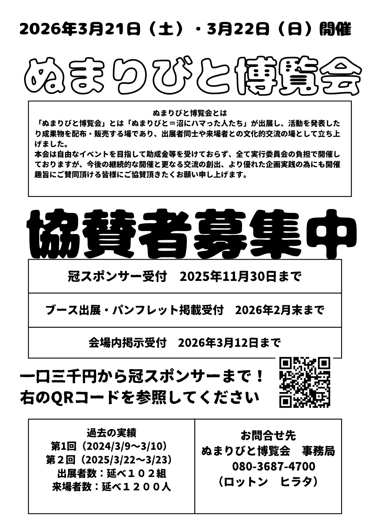 出展者募集チラシを作成しました。面白い沼にハマっている”ぬまりびと”さんを見つけたら、プリントアウトして配って頂けると嬉しいです。